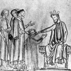 Eduardo, o Confessor, curando os escrofulosos. Miniatura inglesa do sec. XIII (Universidade de Cambridge). Extraído de Castiglioni A. Medicina no Fim da Idade Média. In: História da Medicina. Companhia Editora Nacional, 1947.